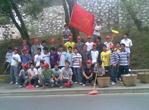 2009年11月15日上午,汽车与环境工程系09级汽车电子技术班的同学在班委的带领下开展了弯腰活动,对柳职院东校区校道两旁的白色污染进行彻底的处理。同学们积极投入活动当中,经过大家的共同努力,整个路面就变得干净漂亮起来。
