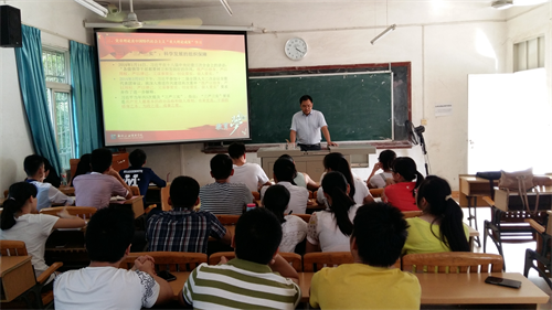 党支部书记杨南首先作中心发言,主要围绕党章及习总书记的系列讲话中的中国特色社会主义“重大理论成果”进行学习。通过摆事实、列数据、举例子等,详细解读了“学党章党规”的背景及原因,深入浅出地解读党所取得的“四大重大理论成果”。杨南老师强调:“学生党员要结合自身实际,响应党的号召,自觉遵守党纪党规和学校各类规章制度,积极参与组织生活并认真完成组织布置的各项工作任务,不断提高自身政治理论水平,做一名讲政治,有信念的共产党员。”
